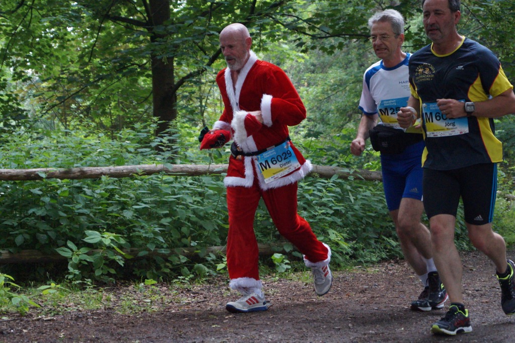Als wenn es nicht reichen würde eine Marathon über vierzehn Anstiege und ca. 530 Höhenmeter bergauf, aufgeteilt auf zwei Runden zu absolvieren, meinte es das Wetter in diesem Jahr auch noch besonders „gut“ mit den Sportlerinnen und Sportlern. Hohe Temperaturen und eine extrem hohe Luftfeuchtigkeit ließen den Schweiß schon vor dem ersten Kilometer in Strömen laufen. An gute Zeiten war bei einem solchen Wetter natürlich nicht zu denken. Ausgenommen vom Sieger der Marathondistanz, der eine neue Bestzeit aufstellte, kam wohl kaum einer oder eine an die gesteckten Ziele heran. Es war schlicht und ergreifend zu warm und zu feucht.