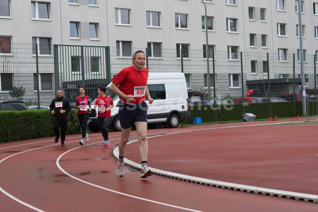 Insgesamt hatten sich 62 Aktive eingefunden, um Geld für die Stiftung Deutsche Schlaganfall-Hilfe zu erlaufen. Das THW Neukölln war allein mit sechs Aktiven vor Ort. Den zahlreichen Zuschauer*innen musste früher oder später auch der Teilnehmer mit der Startnummer 913 auffallen, welcher sich nicht weniger als 200 Runden und somit fast 50km als Ziel gesetzt hatte. Beständig wie ein Uhrwerk kreiste er auf der Bahn, ohne sich von den Sonderwertungen u.ä. aus der Ruhe bringen zu lassen. Ihn störte dabei weder, dass auf einmal ca. 15 Leute im Massenstart eine Rückwärtsrunde absolvierten, noch dass sich auf einmal alle Leuten mit roten (später mit schwarzen) Trikots wie eine Herde Gnus ihren Weg bahnten.