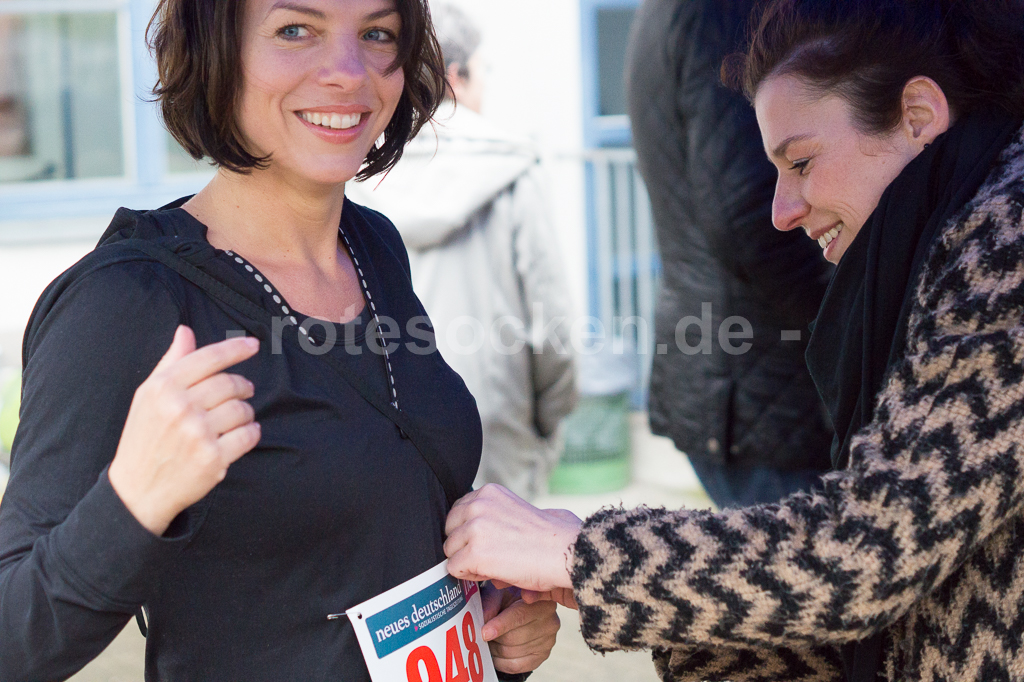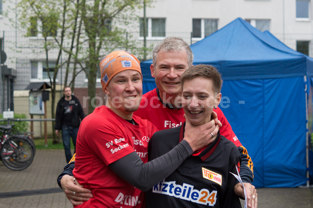 Als am vergangenen Samstag um 13:30 Uhr die ersten Teilnehmer*innen auf dem Sportplatz an der Holzmarktstraße in Berlin eintrafen, wirkte alles auf dem Gelände ein wenig chaotisch und nur wenig deutete auf einen geordneten Start der Veranstaltung um 14 Uhr hin. Dabei hatten sich die Veranstalter*innen des SV Rote Socken doch so viel Gutes für den ersten selbst organisierten Lauf vorgenommen. Hier war noch eine Frage zu beantworten, dort war noch ein Schild aufzuhängen und die Sprüche zur Motivation der Läufer*innen mussten ebenfalls noch angebracht werden. Und wer war gleich noch mal für was zuständig?