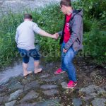 Bereits am Freitagabend gehört es zur guten Tradition einen Stein aus der Selbitz zu fischen und diesen dann über den gesamten Rennsteig zu tragen, um ihn am Ende in der Werra zu versenken. Kurzentschlossen entledigte sich Steffen seiner Schuhe und stieg selbstlos in die in diesem Jahr sehr aufgewühlte Selbitz um den Staffelstein zu ergattern.