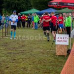 Alex übernahm in der Zeit den Staffelstein von Melanie, um ihn 13,9km später an Wolfram weiterzugeben. [Anmerkung der Redaktion: Auch Alex hatte neben der frühmorgendlichen MTB-Begleitung noch den Skatstadtmarathon vom vergangenen Wochenende in den Beinen, meisterte seine Strecke aber anstandslos in einer Spitzenzeit.] Wolfram wiederum war das erste Mal beim Rennsteigstaffellauf und schwer aufgeregt, ob dieses Events. Dabei gab es zu diesem Zeitpunkt schon lange keinen Zeitdruck mehr, da man weit hinter dem eigenem Zeitplan zurück lag. Am Ende wird er dankbar gewesen sein, die leichteste Strecke (seine eigene Einschätzung) bekommen zu haben, da bereits vor dem Start „sein Oberschenkel zu machte“. Wenngleich diese Etappe leicht aussieht, so darf nicht unterschätzt werden, dass über die ersten 1,5km ein brutaler Anstieg zum höchsten Punkt des Laufes, dem Inselsberg, führen. Danach geht es bis zum Ziel nach Hörschel fast nur noch Berg ab. Während Wolfram und später unser Schlussläufer Daniel noch ihren Teil zum Gelingen des Wettbewerbs beitrugen, bauten die restlichen Socken das Nachtquartier auf dem Campingplatz in Hörschel auf.