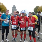 All das konnte Christoph, welcher vor zwei Wochen beim Berlinmarathon krankheitsbedingt nicht starten konnte, nicht davon abhalten eine neue persönliche Bestzeit über die Halbmarathondistanz aufzustellen. In 1:41:01 raste er über den Kurs, belegte damit Platz 187 und sah dann auch schon wieder reichlich erholt aus, als Alex (1:49:06, Platz 354) und Joe (1:53:59, Platz 477) ins Ziel kamen.