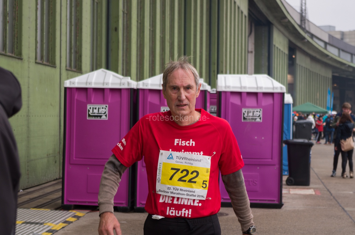 Die Marathonstaffel im November ist eine der Veranstaltungen, bei denen die Roten Socken schon seit vielen Jahren anzutreffen sind – sie gehören faktisch schon zum Inventar. Pünktlich um 10.30 fiel der Startschuss für die ersten Läuferinnen und Läufer in einem der ehemaligen Hangars. Anschließend geht es vorbei an einer Trommelgruppe und je nach zu laufender Distanz ein oder zwei Mal die Start- und Landebahn des ehemaligen Flughafens entlang. Sollten die Planer des BER sich irgendwann entscheiden, das Unterfangen mit dem Flughafen ganz zu lassen, wären die Roten Socken gern bereit, auch dort eine Marathonstaffel zu initiieren. Die traditionellen 42,195km in Tempelhof teilten die Socken auf fünf Laufende (12,195km – 10km – 5km – 10km – 5km) auf.